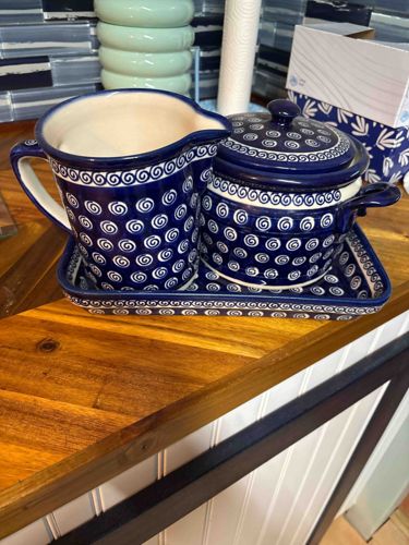 Boleslawiec Polish Pottery Creamer, Sugar Bowl and Tray Set