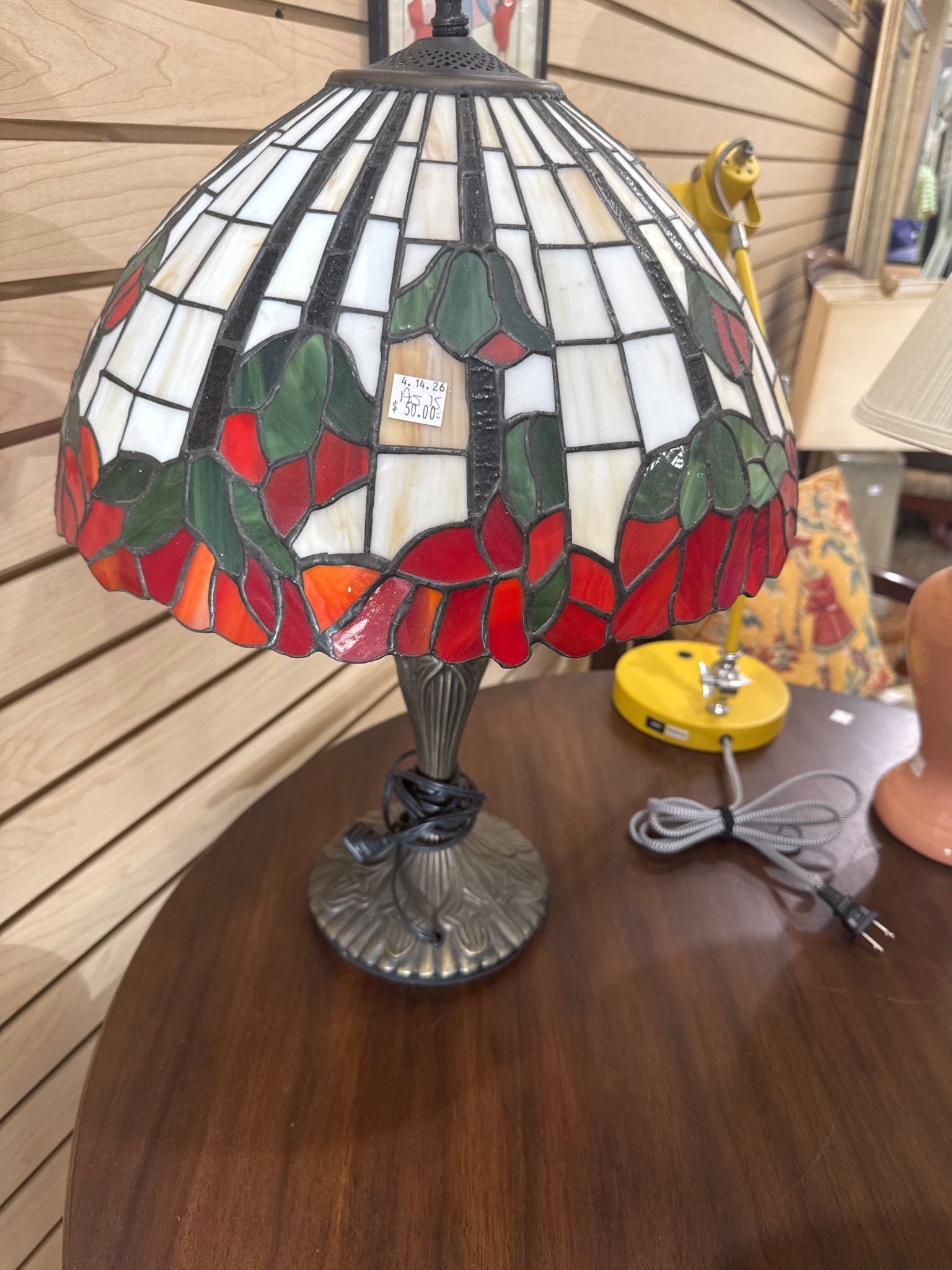 Poinsettia Motif Tiffany-Style Stained Glass Table Lamp