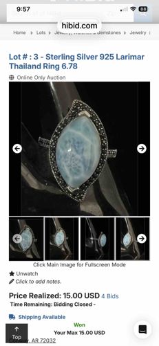 Sterling Silver 925 Larimar and Marcasite Thailand Ring