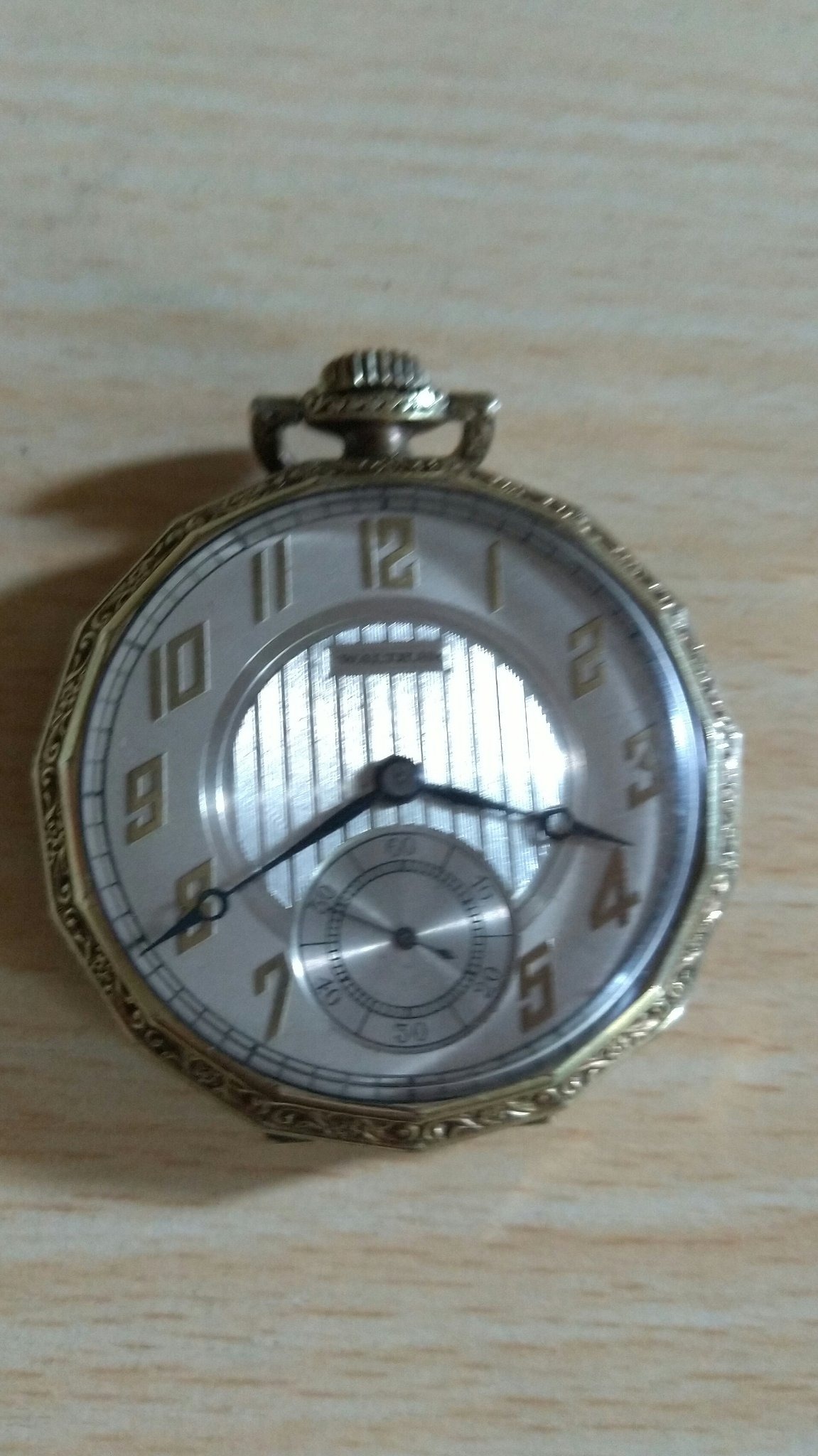 Vintage Waltham Open-Face Pocket Watch with Decagon Case