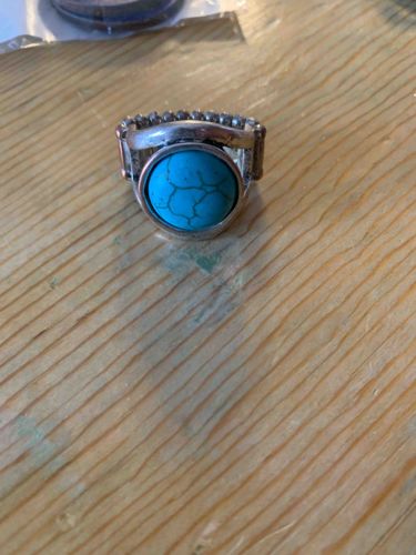 Antiqued Silver Stretch Ring with Faux Turquoise Stone