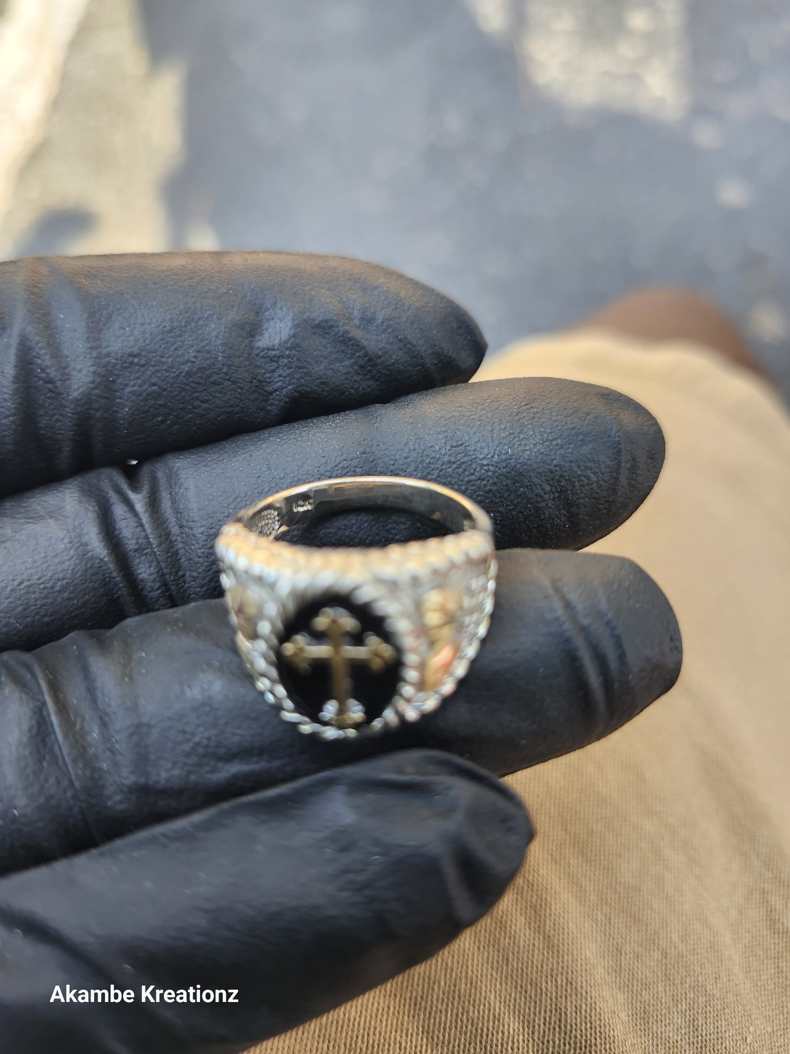 Sterling Silver and Black Hills Gold Cross Signet Ring