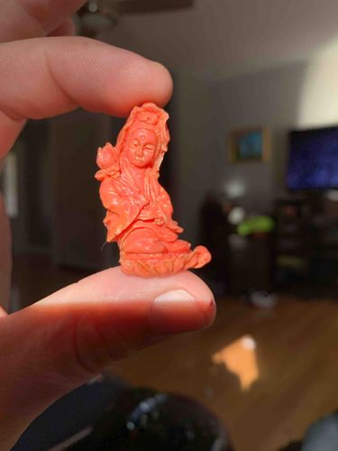 Carved Red Coral Guanyin Figurine