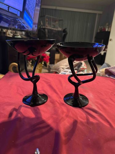 Pair of Mid-Century Modern Cobalt or Black Torsade Stem Art Glass Coupes