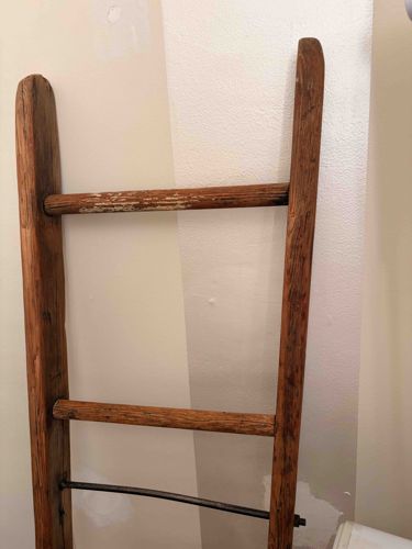 Vintage Primitive Wood Ladder with Iron Tie Rod