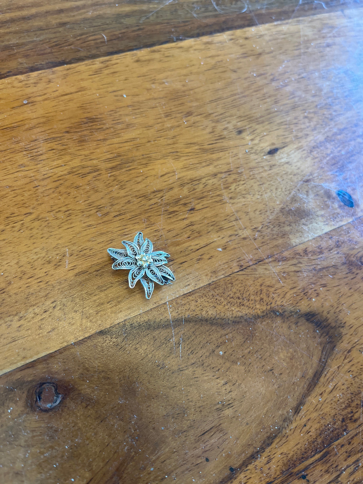 Vintage Silver Filigree Flower Brooch