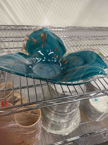 Mid-Century Murano Style Aventurine Turquoise Art Glass Bowl