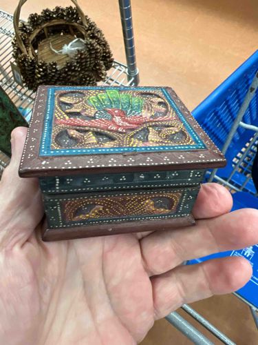 Hand-Carved and Hand-Painted Indian Folk Art Trinket Box