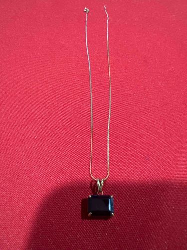 This piece of jewelry features a large, emerald-cut focal stone that is a saturated, midnight blue in color. Based on the deep hue and visible light reflections, the stone may be a dark natural sapphire, a synthetic sapphire, or a midnight blue synthetic spinel. It is secured in a classic four-prong basket setting, likely crafted from yellow gold or gold-toned metal, though no hallmarks are visible in the image to confirm purity (e.g., 14K or 18K). The pendant is suspended from a delicate, fine-link chain, possibly a box or snake chain style, which appears to be in good functional condition. The stone exhibits sharp facets and a clean face, suggesting it has been well-maintained with minimal surface scratching. The overall aesthetic is consistent with mid-to-late 20th-century jewelry design, emphasizing a bold, singular gemstone. The craftsmanship is professional, with the basket setting neatly surrounding the stone's perimeter. There are no obvious signs of heavy wear, tarnish, or repair, though a detailed inspection under magnification would be required to identify internal inclusions or micro-abrasions that would further determine the stone's origin and exact value.