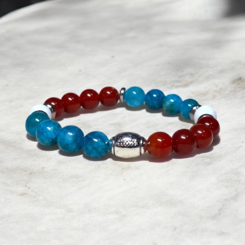 Carnelian and Blue Apatite Beaded American Football Spirit Bracelet