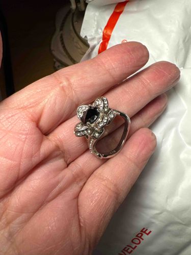 Lotus-Inspired Black Onyx and Crystal Ring in Sterling Silver