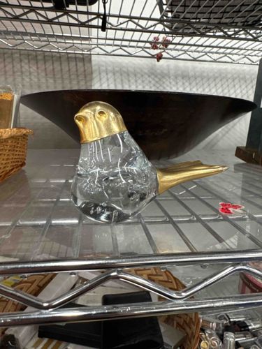 Murano Style Art Glass Bird Figurine with Gold Leaf Detail