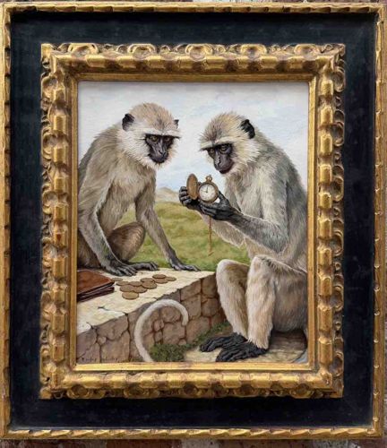 Original Painting of Monkeys with Pocket Watch by Riley Cooley