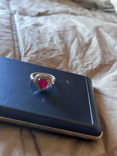 Heart-Cut Ruby and Diamond Halo Ring