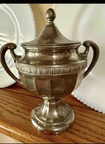 Neoclassical Style Silver-Plated Lidded Sugar Bowl or Trophy Urn