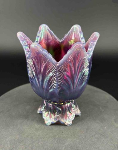 Fenton Carnival Glass Iris Pattern Footed Vase in Iridescent Purple