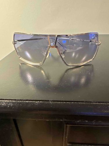 Italian Fashion Shield Sunglasses with Beaded Frame Detail
