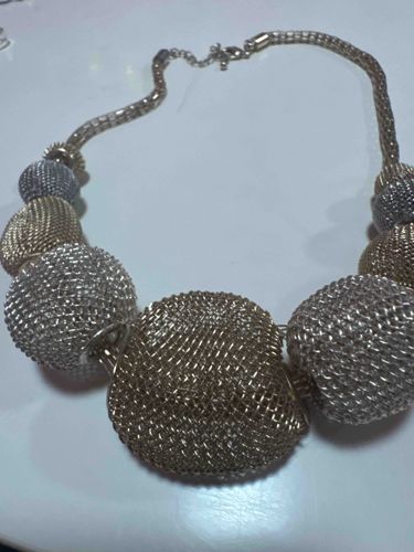 Mixed-Metal Mesh Sphere Statement Necklace