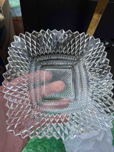 Vintage Diamond Point Pressed Glass Square Dish