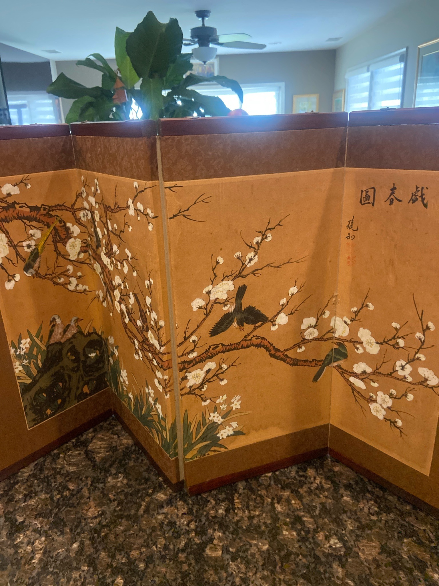Chinese Four-Panel Tabletop Folding Screen with Plum Blossom and Birds