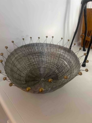 Mid-Century Modern Woven Metal Wire Sputnik-Style Footed Bowl