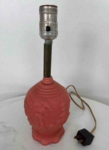 Vintage Akro Agate Coral Satin Glass Table Lamp Base