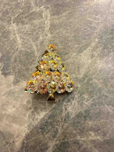 Vintage Aurora Borealis Crystal Christmas Tree Brooch