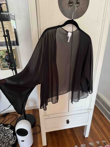Sheer Black Silk Chiffon Kimono-Style Wrap