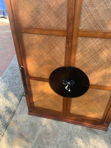 Asian-Inspired Chinoiserie Woven Rattan and Wood Armoire