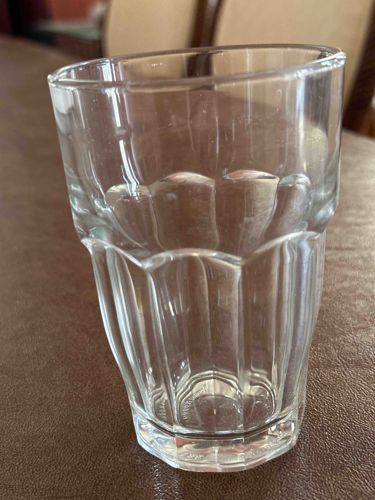 This is a 5-inch tall tempered glass tumbler produced by the renowned Italian manufacturer Bormioli Rocco, specifically from the classic 'Rock Bar' collection. The glassware is constructed from thick, transparent soda-lime glass, featuring a distinctive paneled or fluted design on the lower two-thirds of the vessel. This faceted architecture transitions into a smooth, slightly flared cylindrical rim at the top, a design choice engineered for stackability and durability in high-volume environments. The base is heavy and weighted, providing stability and showcasing the clarity of the material. Visible markings on the bottom typically include the 'Bormioli Rocco Italy' stamp, identifying its origin and manufacturing heritage. The glass exhibits a clear color with high transparency, though this specific piece shows some light surface scuffing and cloudiness indicative of regular use and mechanical dishwashing. The item is characteristic of late 20th to early 21st-century commercial-grade barware, prized for its thermal shock resistance and classic European aesthetic. The craftsmanship is industrial-grade, focused on uniformity and resilience, making it a staple in both professional bistros and residential kitchens.