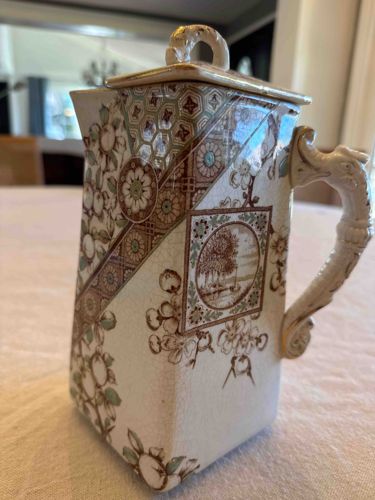 Japanese Satsuma Style Rectangular Lidded Pitcher or Chocolate Pot