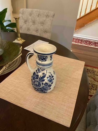 Delft Blue Floral Glazed Ceramic Pitcher