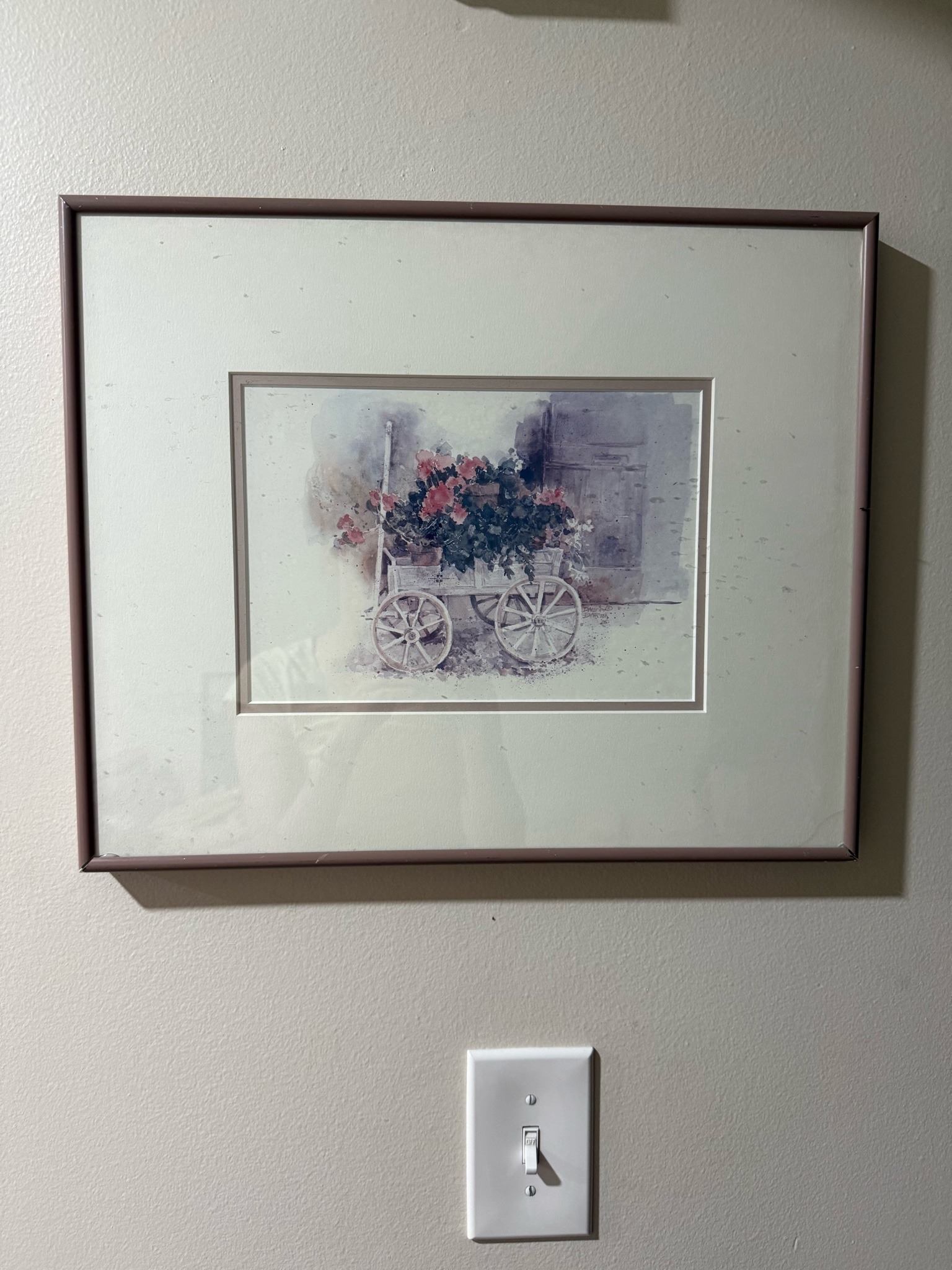 Framed Watercolor Floral Cart Painting by Dolly and Daryl Dyer