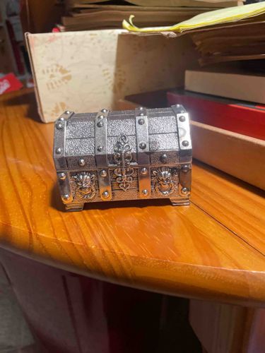 Ornate Silver-Toned Metal Treasure Chest Trinket Box
