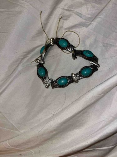 Broken Faux-Turquoise and Rhinestone Stretch Bracelet