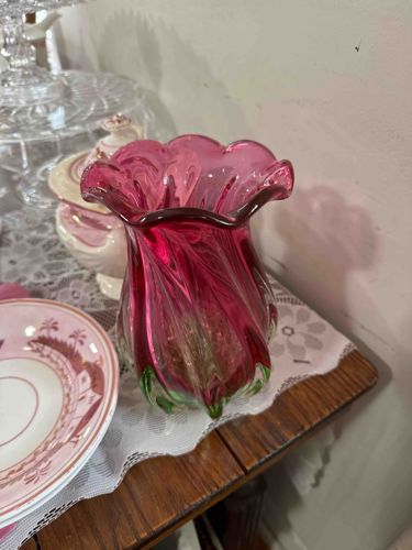 Mid-Century Murano Style Cranberry and Green Sommerso Art Glass Vase