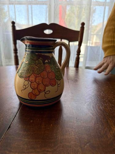 Hand-Painted Majolica Style Ceramic Grape Motif Pitcher