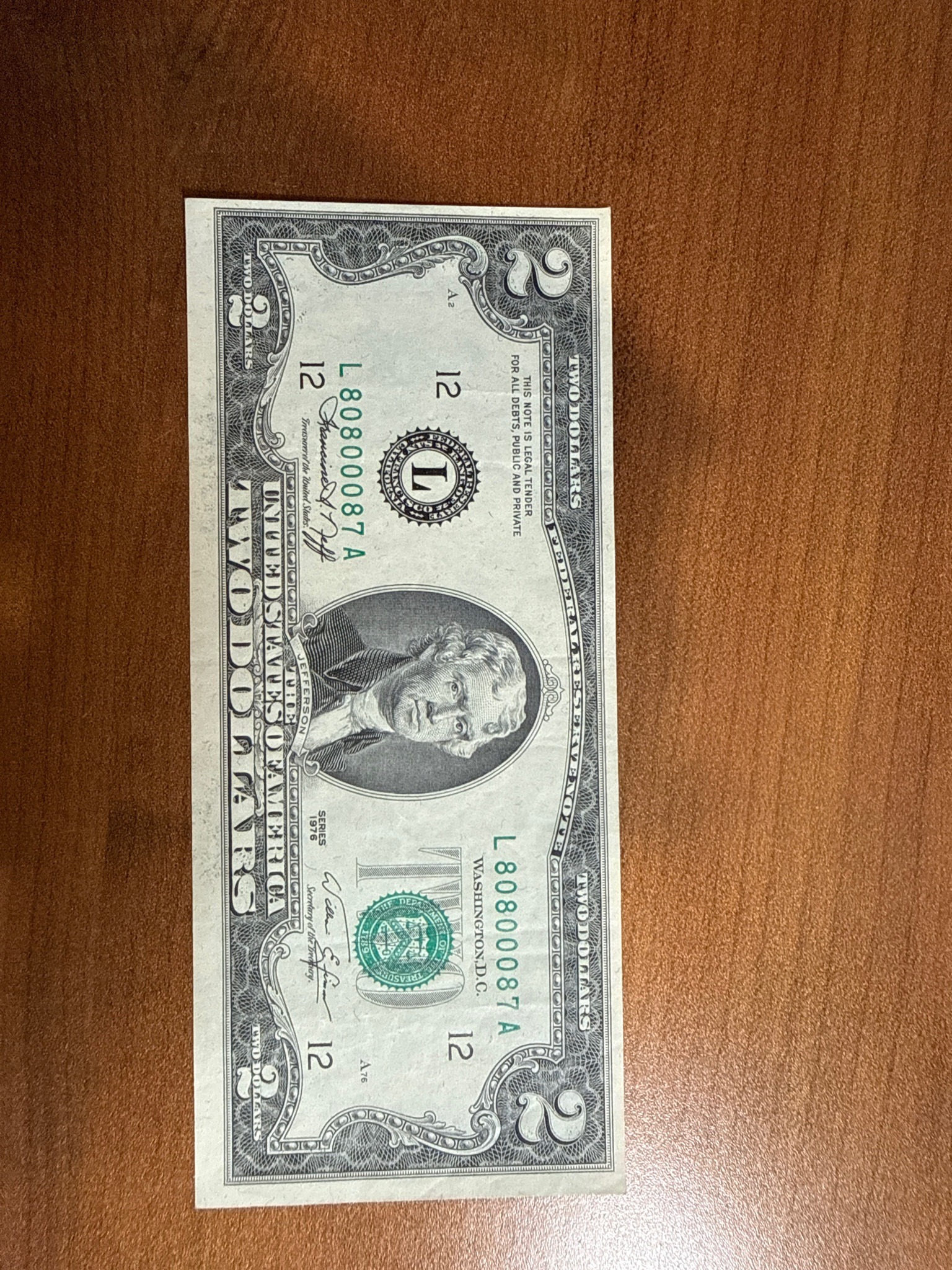 Series 1976 United States Two-Dollar Federal Reserve Note