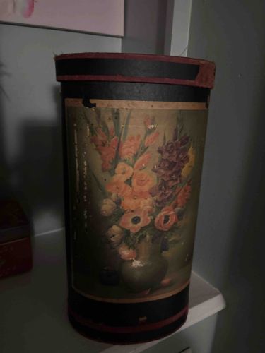 Vintage Cylindrical Cardboard Floral Hat Box