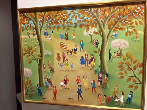 Naïve Style Park Scene Oil Painting