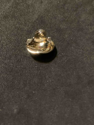 This is a single vintage clip-on earring featuring a polished silver-tone finish. The item is characterized by a rounded, domed frontal design with a smooth, reflective surface that indicates a high-polish chrome or silver-plated finish over a base metal. The mechanism is a standard tension-style clip-on back with a ribbed finger grip for ease of use, suggesting a mid-to-late 20th-century manufacture date, likely between the 1960s and 1980s. Physically, the piece is small in scale, designed to sit flush against the earlobe. The construction appears to be a two-part assembly where the decorative dome is soldered or glued to the earring clip base. Notable condition issues include visible surface scratches and minor pitting consistent with moderate wear and age. There is slight tarnishing and oxidation visible in the crevices of the clip mechanism, suggesting it may be a non-precious base metal alloy. No maker's marks or hallmarks are visible in the current view, which is common for mass-produced costume jewelry of this era. The style is classic and minimalist, fitting within the 'mod' or professional aesthetic of its time. The build quality displays standard commercial craftsmanship for fashion jewelry.