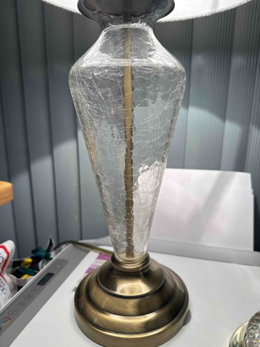 Clear Crackle Glass Table Lamp with Antique Brass Base