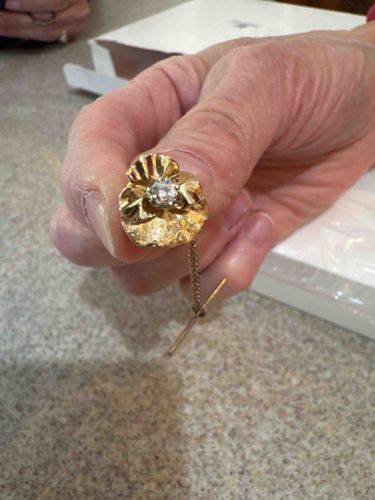 Gold-Tone Floral Stick Pin with Faux Diamond