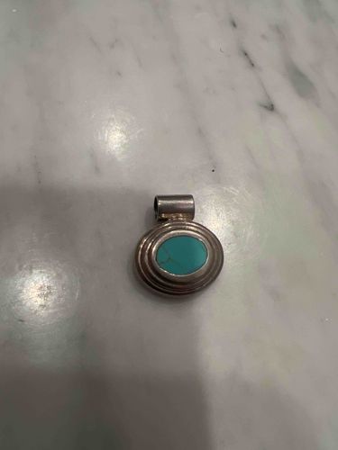 Vintage Mexican Sterling Silver and Turquoise Oval Pendant