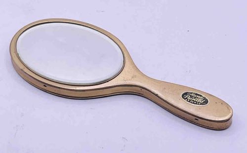 Vintage Celluloid or Bakelite Hand Mirror with 'Hand Painted' Label