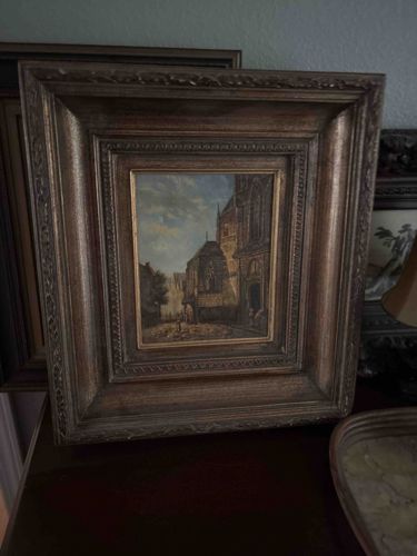 Framed Architectural Cityscape Oil Painting on Panel