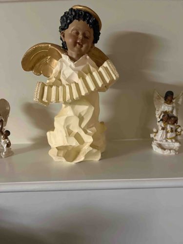 African American Cherub Angel with Accordion Figurine