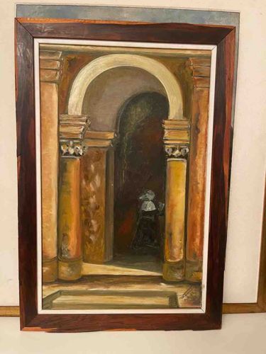 Mid-Century Architectural Oil Painting by W. Tarcat (1969)