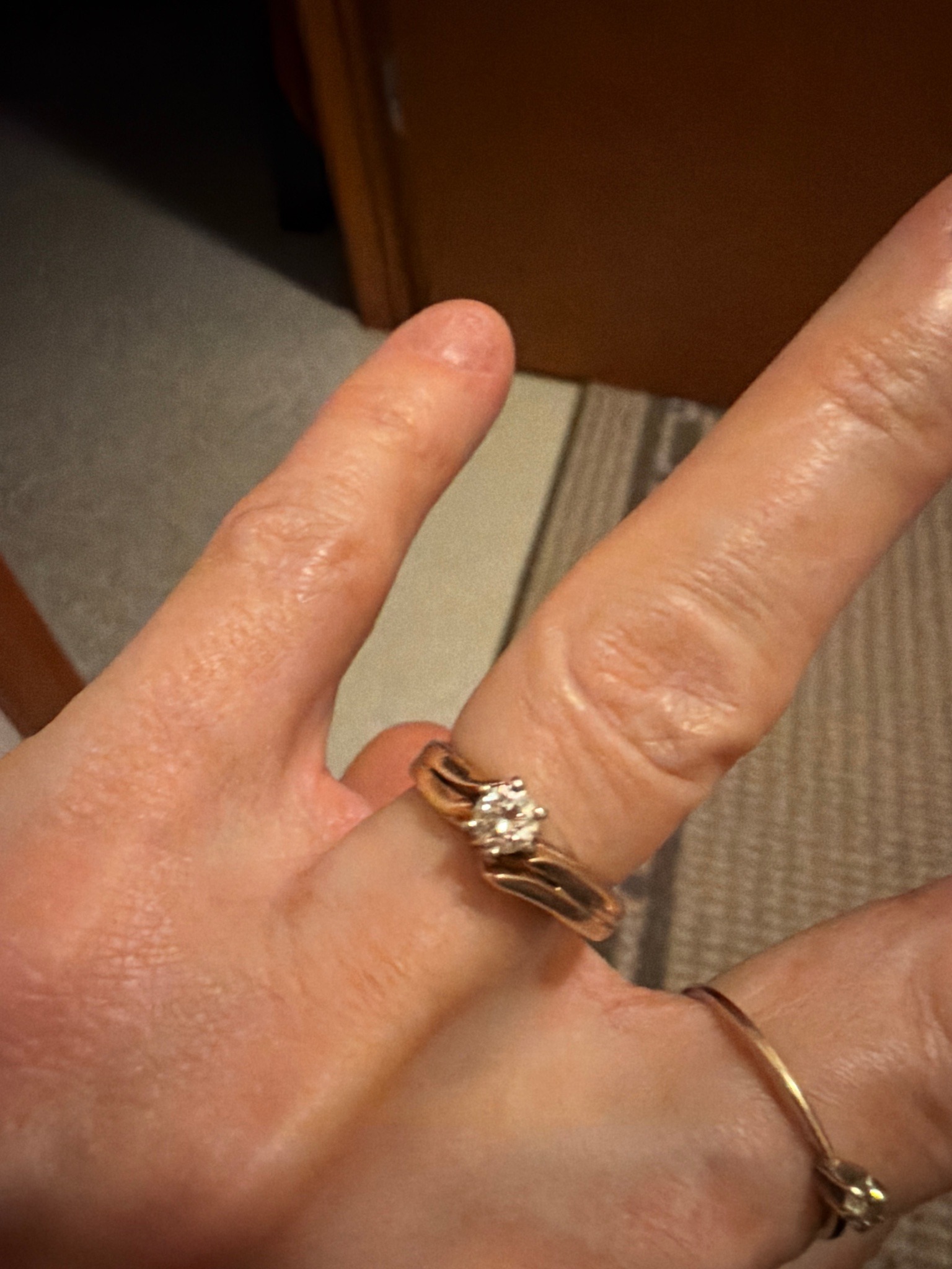 This fine jewelry item is a contemporary-style solitaire engagement ring featuring a round brilliant cut diamond center stone. The diamond is secured in a classic six-prong crown setting, which provides maximum light exposure and security. The band exhibits a distinctive 'bypass' or crossover design, where the yellow gold shank splits and curves gracefully around the central setting, creating a fluid, asymmetrical look. Based on its luster, the metal is likely 14k or 18k yellow gold. The diamond appears to be approximately 0.25 to 0.35 carats in size. In terms of condition, the gold shows light surface abrasions and a softened patina consistent with regular wear, particularly along the lower portion of the shank. The prongs appear intact, though a professional cleaning and inspection are recommended to assess the stone's security and light performance. The overall craftsmanship suggests a modern mass-produced or boutique manufacturing origin, likely dating from the 1990s to the early 2010s. The sleek, curved lines of the bypass mounting offer a feminine and dynamic alternative to a traditional straight-band solitaire.