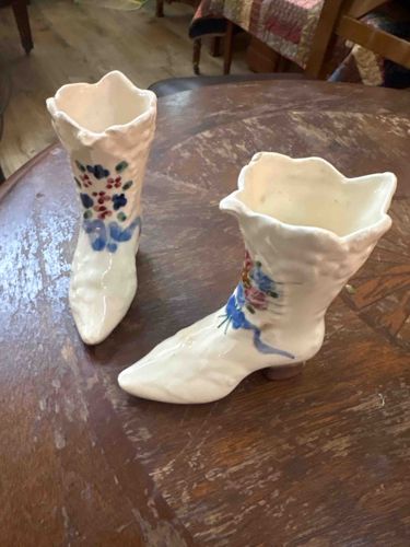 Vintage Victorian-Style Porcelain Shoe Figurines/Bud Vases